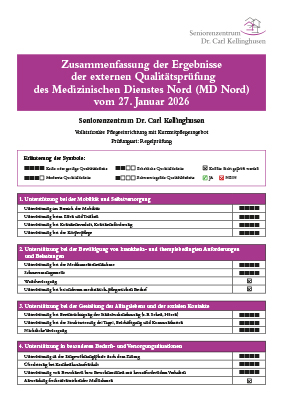 Die Qualitätsprüfungen unseres Seniorenzentrums Dr. Carl Kellinghusen durch den Medizinischen Dienst Nord (MD Nord) – früher MDK – finden regelmäßig statt.